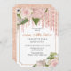 Invitación Rosa floral rosada Purpurina de oro niña rociada