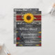 ¿Planea una boda campestre y desea incorporar rosas rojas y girasoles amarillos? Eche un vistazo a estas invitaciones de boda con acuarela que se pueden personalizar fácilmente para su gran día, o incluso una despedida de soltera (entre otras celebraciones). El diseño pintado a mano creado por Raphaela Wilson ilustra un girasol de acuarela con pequeñas hojas verdes de menta y flores de bebé aliento sobre una cinta de encaje borgoña y arpillera: un hermoso aspecto vintage como se ve con frascos de mason y otros centros de mesa campestres. Un fondo de madera gris de granero desgastado con luces de cuerda brillantes acentúa el fondo. Con estas invitaciones de boda de girasoles únicas, tiene muchas opciones de diseño de color y flor a su alcance, incluyendo una cinta de encaje blanco, y también azul marino, azul oscuro, púrpura, y también una versión que excluye la decoración de encaje. Además, elija entre varios tipos de tonos de madera, como azul marino, blanco antiguo y un marrón cálido y rico. Simplemente personalice el diseño aún más, lo que revelará estas características. Si lo prefiere, vuelva a colocar los gráficos y también