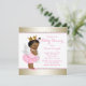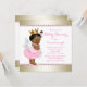 Invitación a la ducha de bebé de ángel étnico adorable con una bebé de ángel étnico adorable que usa pantalones de rufa rosados, alas, halo y cuerda de perlas en un fondo de perlas rosa y dorada. Esta bonita y elegante invitación a la ducha de bebé de ángel de oro y rosa se personaliza fácilmente para tu evento añadiendo tus detalles en el estilo de letra, color y redacción de tu elección. También puede cambiar el color de fondo. Diseño impreso sin arcos purpurinas de perlas reales, etc.