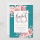 Elegante Rosa del 16º cumpleaños Gold Floral y Purpurina en plantilla Verde azulada de invitación.