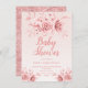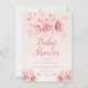 Invitación Rosa Gold Floral Rubor Purpurina Baby Shower
