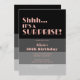 Invitación Rosa Gold Script Black Stripes Surprise Cumpleaños