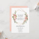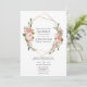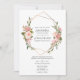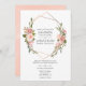 Invitación a la boda color agua de rosa color rosa y rosa de color rosa Rubor con acentos de verde sabio adornando un marco geométrico dorado.