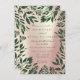 Invitación Rosa hoja de oro brillo Marco floral verde
