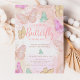 Invitación Rosa lindo un poco de moda mariposa primer cumplea