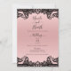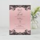 Invitación Rosa Melocotón Tinta Negra Encaje Elegante Boda