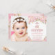 Invitación Rosa moda Oro Purpurina Rosa Baptismo Floral Foto