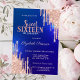 Invitación Rosa moderno Purpurina de oro gotea dulce azul 16