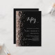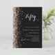 Para una elegante fiesta de cumpleaños número 50 (o cualquier edad). Un fondo negro clásico. Decorada con confeti de oro rosa. Personalice y agregue un nombre y detalles del fiesta.