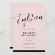 Invitación Rosa Negro Moderno Script Mínimo Dieciocho 18 18