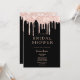 Invitación Rosa negro purpurina oro gotea glam Bridal Shower
