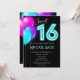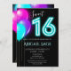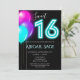 Esta moderna invitación a los 16 años de Sweet presenta una combinación de colores neones y negros con globos brillantes. Personalizar con facilidad con la información de su fiesta.