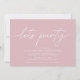 Invitaciones sencillas y modernas para el cumpleaños con el texto del encabezado que dice "vamos a ser fiestas" en escritura. Añada los detalles de su evento a continuación. Texto blanco sobre fondo rosa pastel.