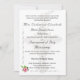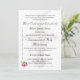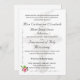 El diseño elegante presenta la débil imagen de un Crucifijo plateado contra el blanco puro como fondo del texto del personalizable. El formato es el de una invitación tradicional de boda católica. Este diseño, acentuado por la imagen de una rosa rosa rosa en la esquina izquierda y adornado con un elegante florecimiento, es perfecto para un boda católico tradicional. Al revés aparece un verso biblial sobre el matrimonio. La imagen de dos anillos bodas dorados se muestra en la parte inferior derecha. Todo el texto es personalizable.