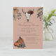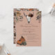 Esta elegante invitación de Acción de Gracias o Amistad incluye ilustraciones hechos a mano con la temática de Western Fall Harvest con tinta negra, mostrando un cráneo de vaca adornado con rosas, calabazas y hojas de otoño. La parte posterior presenta un bonito patrón con estos elementos. Fondo rosa vintage.