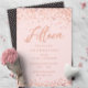 Invitaciones a la fiesta de cumpleaños 15 del Rosa Gold: Confeti de oro rosa Bonito diseño de fiesta de cumpleaños 15 con brillantes puntos de polka de Relieve metalizado rosa de oro. Rosa de oro "Quince" escrito en tipografía manuscrita. Las letras contemporáneas rellenan los detalles del fiesta. [Tenga en cuenta que mientras los elementos de este diseño se imprimirán para que parezcan Relieves metalizados, no se utiliza ningún Relieve metalizado real o tinta metálica para crear las invitaciones - el Relieve metalizado de oro rosa es un efecto impreso.]
