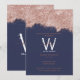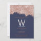 Un diseño de polvo rosa de purpurina ondulante azul marino rosa azul marino con monograma personalizado y nombre. Un regalo ideal para los amantes del brillo y el purpurina. El diseño de la invitación al cumpleaños color rosa rosado perfecto para cualquier edad. Consulte nuestra colección para ver la decoración fiesta y los favores.