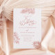 Perfecto para bodas de playa de destino, esta invitación a la boda incluye hojas tropicales de oro rosa con tipografía de escritura divertida y moderna. *Si quieres más productos con este diseño, o variaciones de diseño, por favor contacta conmigo a través de Zazzle Chat.