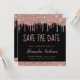 Oro Rosa - Purpurina de goteo de espuma rosada y negra Dulce Dieciséis - 16 Chicas Partidos de Cumpleaños Guardar la Invitación de Fecha. Esta invitación es perfecta para la fiesta de cumpleaños número 16 de Sparkle Purpurina que busca celebrar en oro rosa.