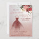 Invitación Rosa oro purpurinoso vestido de burdeos Quinceañer