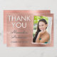 Tarjeta de agradecimiento de graduación metálica de oro rosa de acero inoxidable falso. Esta tarjeta de agradecimiento de graduación femenina de color rosa suave de 2018 es perfecta para la graduada que ama el oro rosa y el brillo. Esta tarjeta de agradecimiento de oro rosa se puede personalizar para incluir su nombre, escuela secundaria o universidad, año de graduación y foto.