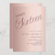 Una invitación moderna de Sweet 16. Fondo Subió de gradiente dorado y la palabra Dieciséis escrito con letras grandes. Personalice y agregue un nombre y detalles del fiesta.