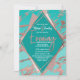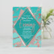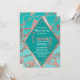 Elegantes, chic y modernas con un toque retro, contorno de forma de diamante geométrico en falso oro rosa impreso sobre verde teal y mármol de falso oro rosa con recortes de diamante en color malva y rosa claro, invitaciones para recepción de boda por la noche. Este diseño clásico y sofisticado es perfecto para la pareja que se casa trendy y elegante. Personalice con su propio mensaje en la parte delantera, así como una inicial de monograma personalizada en la parte posterior. Todo el diseño es de impresión fotográfica.