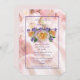Una hermosa invitación de boda con un fondo de flores de cerezo rosadas. El centro rosa pálido está realzado con hermosas rosas Peace de color amarillo rosado y acentos de color púrpura.