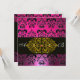 Invitación ROSA PURPURA NEGRO DAMASCO MONOGRAMA ,fucsia,oro