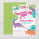 Invitación al cumpleaños de Dinosaurio, Rosa, Púrpura, Verde azulada, Verde Lime, Invitación al cumpleaños Chica