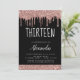 Rubor Pink - Chica de Purpurinas de Oro Rosa y Perforación Negra con Espuma Negra, convirtiéndose en la 13ª Invitación de Fiesta de Cumpleaños (Trece) . Este es el 13.° aniversario perfecto: Trece cumpleaños invitan a una moderna fiesta de cumpleaños de la Purpurina Sparkle Girly. Póngase en contacto con el diseñador para que coincida con los elementos personalizados.