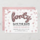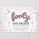 Elegante diseño "40 cumpleaños Fiesta Salva la fecha" con Rosa de letras de globo de oro y confeti Purpurina, y nombre personalizado y texto de detalles. Impresione a su familia y amigos con este diseño elegante y glamuroso. Fácil de usar y fácil de personalizar. ¡No te quedes sin el tuyo!