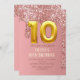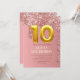 Invitación Rosa Purpurina de Oro Chica Rosa Girly 10° cumplea