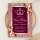 Invitación Rosa Purpurina de oro Floral Princess Sweet 16