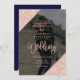 Rosa Tipografía de bloques de color purpurina dorado con superposición fotográfica y sobre personalizable azul marino y rosa boda de rayas geométricas moda , perfecto para boda elegante y lujoso,