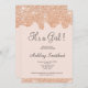 Invitación Rosa purpurina de oro gotea moda chica rosa ducha