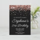 Invitación Rosa Purpurina de Oro Negro 21 cumpleaños