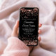 Una glamorosa invitación de 16 años para su descarga impresa o digital. Purpurina de oro rosa brillante en imitación con chispas sobre un fondo de color negro sólido personalizable. Personalizar la caligrafía y los estilos de fuente según sea necesario para crear tu propia invitación para su glamorosa celebración del hito. Todos los elementos brillantes y purpurinoso de este moderno diseño de chicas son gráficos digitales que se imprimen como una foto.