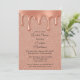 Celebra tu día especial con esta glamorosa invitación a la boda de oro rosa. Con un brillante fondo purpurina y elegantes goteos de oro en rosa metálico, este diseño es perfecto para bodas modernos con un toque de brillo. Ideal para las duchas de novias, recepciones o cualquier evento romántico de lujo. Personalizar con los detalles de su boda para una invitación verdaderamente impresionante.