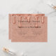 Celebra tu día especial con esta glamorosa invitación a la boda de oro rosa. Con un brillante fondo purpurina y elegantes goteos de oro en rosa metálico, este diseño es perfecto para bodas modernos con un toque de brillo. Ideal para las duchas de novias, recepciones o cualquier evento romántico de lujo. Personalizar con los detalles de su boda para una invitación verdaderamente impresionante.
