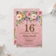 Rosa Purpurina dorado Pink Floral 16a. Invitación de cumpleaños para Chica. Flor floral acuarela. Fondo Rosa Purpurina Rosa. Rosa, Amarillo, Naranja, Flor Púrpura. Cumpleaños de adultos. 13. 15. 16. 18. 20. 21. 30. 40. 50. 60. 70. 80. 90. 100. Cualquier edad.