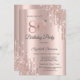 Invitación Rosa Purpurina Oro Drips Rosa Oro 80 cumpleaños