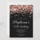Invitación Rosa Purpurina Oro Negro Elegante 40 cumpleaños