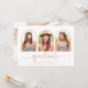 Invitación de graduación fotográfica Boho Rosa Relieve metalizado dorado Marble Arch 3 con 3 de sus fotos favoritas y nuestra impresionante tipografía de moda boho y arco geométrico con un fondo de impresionante mármol de oro rosa. ¡Perfecto para anunciar tu graduación! Póngase en contacto con nosotros en cedarandstring@gmail.com si necesita ayuda con el diseño o productos de coincidencia.