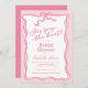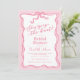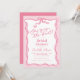 Celebra a la futura novia con estas invitaciones elegantes y retro con un arco rosado dibujado a mano "ella está atando el nudo". Esta invitación a una ducha de novia con arco rosa puede ser personalizada con tus propios detalles. Elige tenerlos impresos, recibir como descarga digital o ambos!