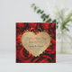 Hermosa invitación de bodas de aniversario número cincuenta con una profusión de rosas rojas carmesí profundas en la parte delantera y trasera de la tarjeta. La parte delantera tiene una elegante pancarta dorada en forma de corazón. Personalice el texto de la parte frontal y trasera de la invitación con su información. Este diseño está disponible en otros artículos de mi tienda. También disponible en versión cuadrada en mi tienda. Estilo de letra t ligeramente diferente en esta versión para el 50º.
