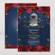 Invitación Rosa Roja Azul Marino Dorado Quinceañera Encantada