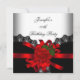 Invitación Rosa Roja Encaje Negro Plata Fiesta
