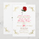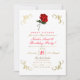 Invitación Rosa Roja Flores Esquinas Doradas Fiesta Dulces 16