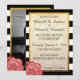 Invitación Rosa Roja Moderna Hoja de Oro Falso Rayado de Boda
